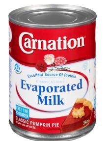 Carnation Evaporated Milk is a shelf stable milk that is richer and creamier than milk because some of the water has been removed. With a slight carmelized flavour, it's a easy and delicious ingredient to bake and cook with.