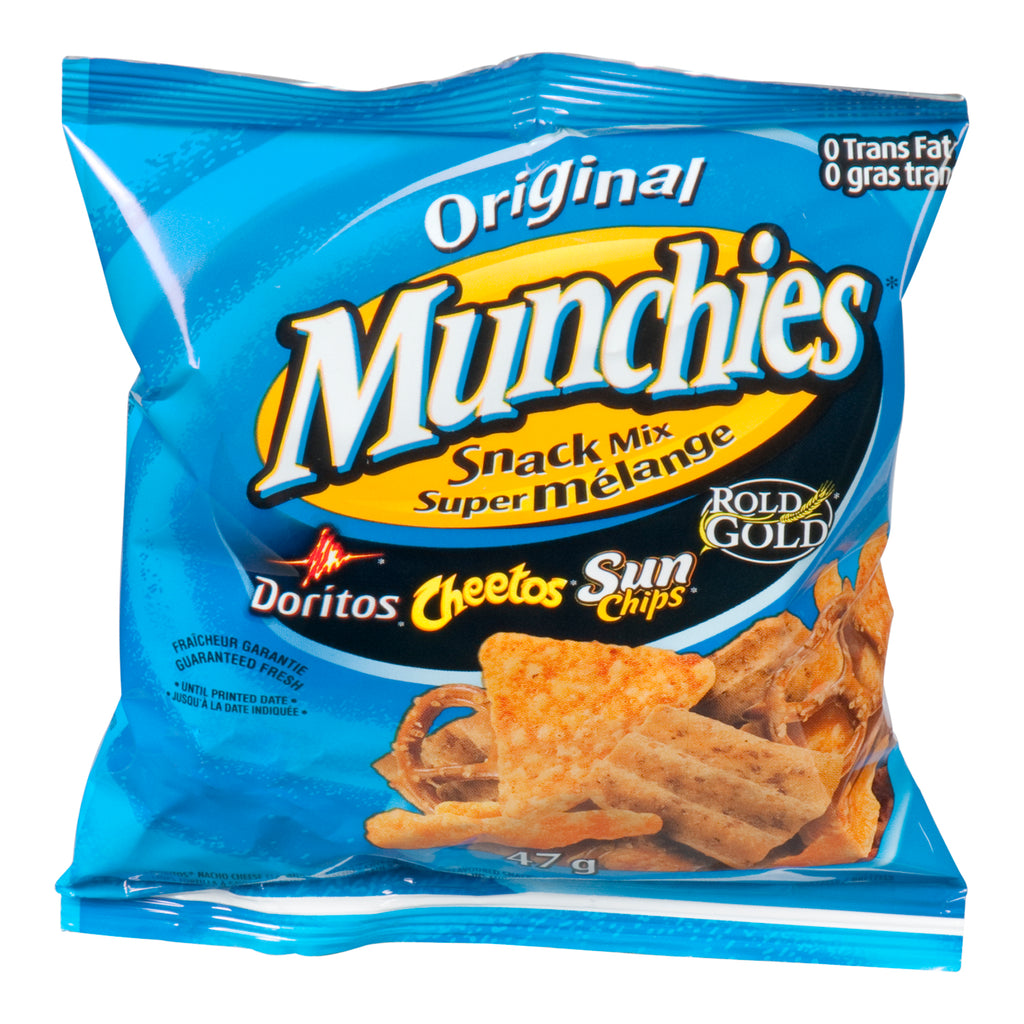 Doritos Nacho Cheese Flavoured Tortilla ChipsIngredients: Selected Corn, Vegetable Oil, Seasoning (Maltodextrin, Modified Milk Ingredients, Cheddar Cheese, Salt, Monosodium Glutamate, Romano Cheese, Potassium Chloride, Onion Powder, Vegetable Oil, Corn Flour, Dextrose, Tomato Powder, Spices, Lactic Acid, Garlic Powder, Citric Acid, Sugar, Red And Green Bell Pepper Powder, Disodium Inosinate, Disodium Guanylate, Sunset Yellow Fcf, Caramel, Paprika, Tartrazine, Annatto, Turmeric, Allura Red, Natural And Artificial Flavour), Calcium Hydroxide.Contains: MilkCheetos Cheese Flavoured SnacksIngredients: Enriched Cornmeal (Cornmeal, Niacin, Iron, Thiamine, Riboflavin, Folic Acid), Vegetable Oil, Seasoning (Modified Milk Ingredients, Cheddar Cheese, Maltodextrin, Vegetable Oil, Salt, Monosodium Glutamate, Lactic Acid, Citric Acid, Sunset Yellow Fcf, Natural And Artificial Flavour), Salt, Vinegar.Contains: MilkSunchips Harvest Cheddar Flavour Multigrain SnacksIngredients: Whole Corn, Vegetable Oil, Whole Wheat, Brown Rice Flour, Whole Oat Flour, Seasoning (Maltodextrin, Salt, Modified Milk Ingredients, Vegetable Oil, Cheddar Cheese, Onion Powder, Potassium Chloride, Romano Cheese, Yeast Extract, Paprika, Citric Acid [For Tartness], Sugar, Garlic Powder, Lactic Acid, Parmesan Cheese, Natural Flavour), Sugar.Contains: Wheat, Oats, MilkRold Gold PretzelsIngredients: Enriched Wheat Flour, Sugars (Corn Syrup, Barley Malt Extract), Vegetable Oil, Salt, Ammonium Bicarbonate, Potassium Hydroxide, Active Dry Yeast, Sodium Hydroxide.Contains: Wheat, Barley